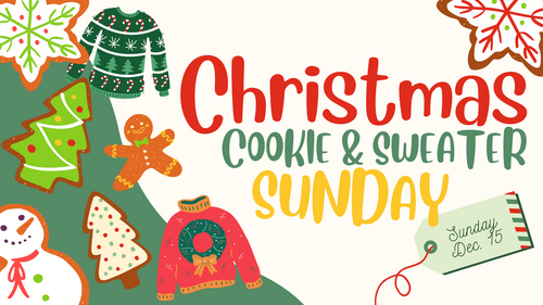 Bring a dozen of your favorite Christmas Cookies to share with the congregation and wear your favorite Christmas sweater on this special day.